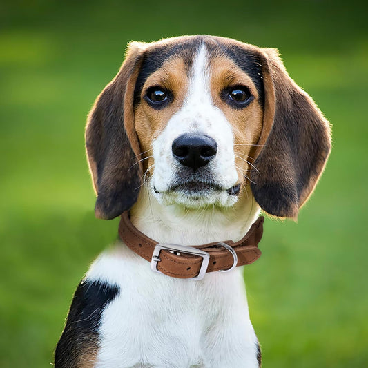 Leather Dog Collar, Heavy Duty Wide Dog Collar for Small,Medium,Large and Extra Large Dogs (M: 1" Wide for 15.2"-19.2" Neck, Dual Stitch - Brown)